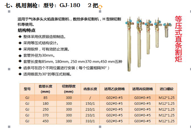 *本產(chǎn)品在用戶無特殊要求時,標配乙炔割嘴